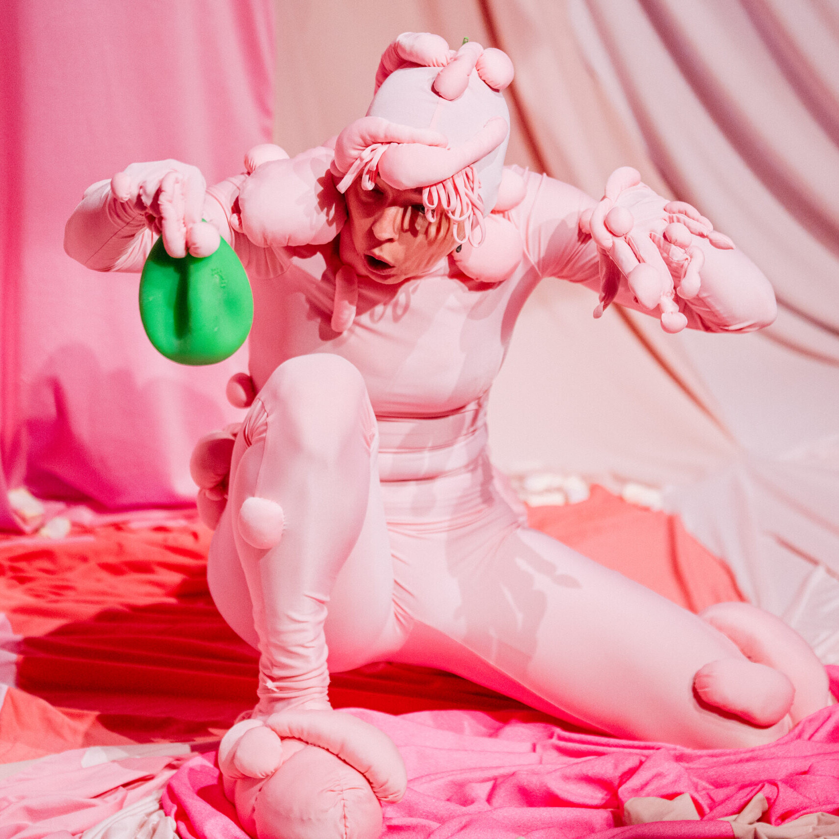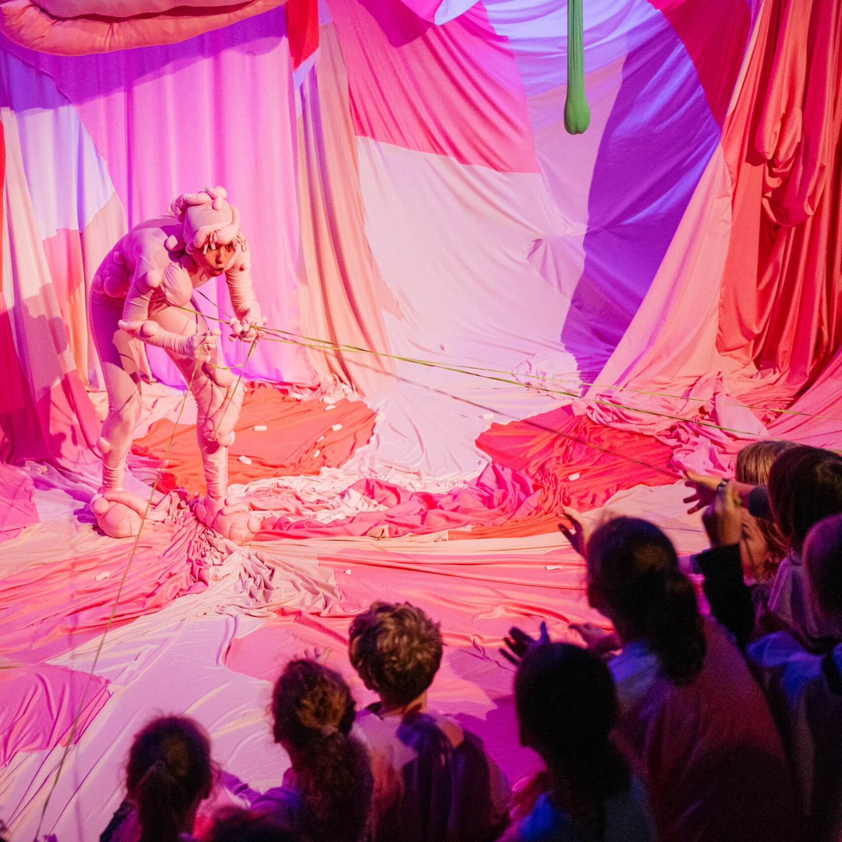 Judith Schuur nodigt je met haar residentie Mallowwww (6+) uit in haar fantasierijke universum waar je niet alleen toekijkt, maar zélf onderdeel wordt van deze rollercoaster van indrukken. Alles is roze, zacht, bouncy en kleverig. Een ervaring waarin al je zintuigen geprikkeld worden. Raak in gesprek met een Mallow, schuil voor de mysterieuze mallowstorm en zie dé Mars der Mallows op je neerdalen. Totdat er onverwachte zwarte derrie uit Mars begint te druipen…